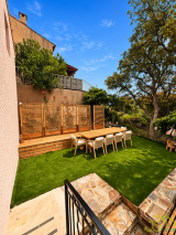 Nouveau à la vente, dans un secteur privilégié de Saint Clair, ce magnifique mazet à la rénovation soignée vous séduira grâce à ses grands espaces aussi bien à l'intérieur qu'à l'extérieur. Le mazet entièrement climatisé se compose d'un séjour ouvert sur la terrasse, d'une cuisine moderne équipée, de 2 chambres, 2 salles d'eau, un espace détente...dehors les grandes terrasses surplombent les colines avec une magnifique vue dégagée et la mer en toile de fond. Un bien rare au Lavandou où famille et amis pourront s'y retrouver et passer de merveilleux moments à moins de 2 km de la plage.